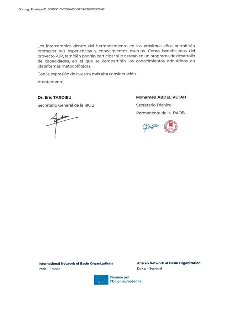 “Este hermanamiento representa una oportunidad única para fortalecer el aprendizaje mutuo entre cuencas de diferentes continentes y avanzar en una gestión más sostenible e inclusiva del agua”, destacó el Secretario General de la RIOB, Dr. Eric Tardieu.