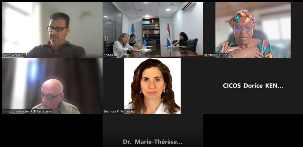 El encuentro contó con la participación de la secretaria general de CICOS, Dra. Marie Theresé Itongo, y, en representación de la COMIP, la Dra. Teresa Salatino y el Lic. Enrique Guardo, entre otros integrantes de ambos